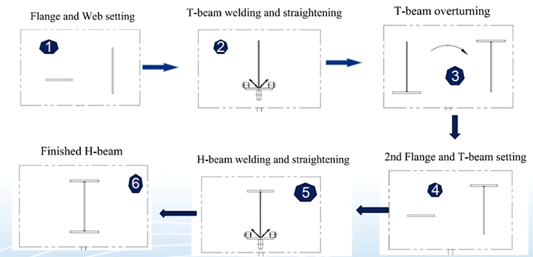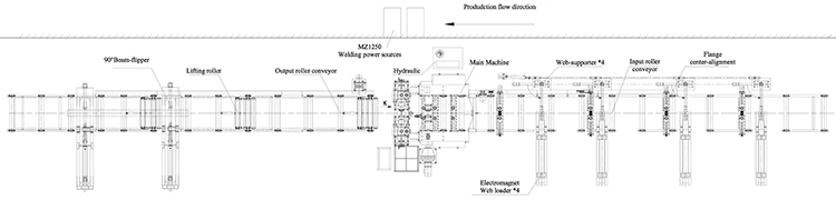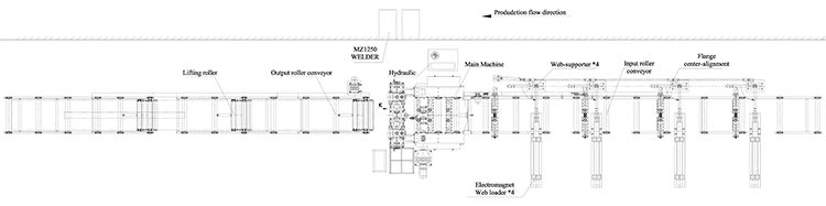 Niektórzy klienci mogą wymagać zwiększenia produkcji produkcyjnej, potrzebują jednej linii spawalniczej, aby składać się z 2 zestawów stacji spawalniczej. Pierwsza stacja spawalnicza do spawania 1. kołnierza i sieci w celu utworzenia wiązki T, druga do spawania spawanej wiązki T i drugiego kołnierza, tworząc wiązkę H.